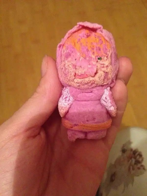Собака, как настоящий защитник, напала на эту пугающую жертву Хиросимы, чем довела её до абсолютного тлена. Иногда мне кажется, как я слышу, что эта игрушка шепчет: "убейте меня".