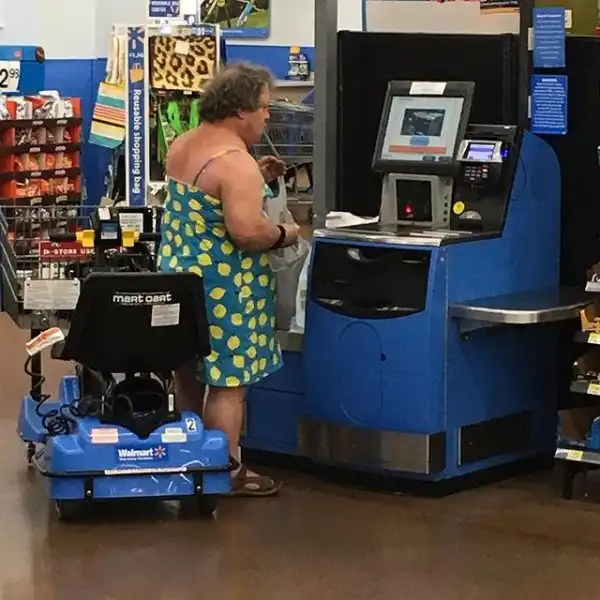 Когда срочно нужно в магазин и ты одел первое, что попалось под руку. И не важно, что это платье жены.