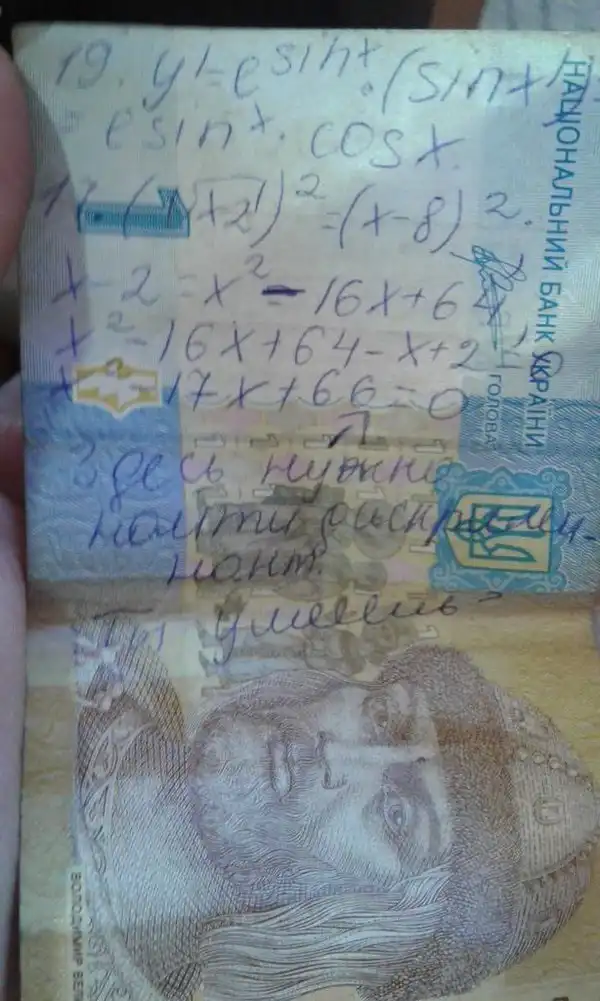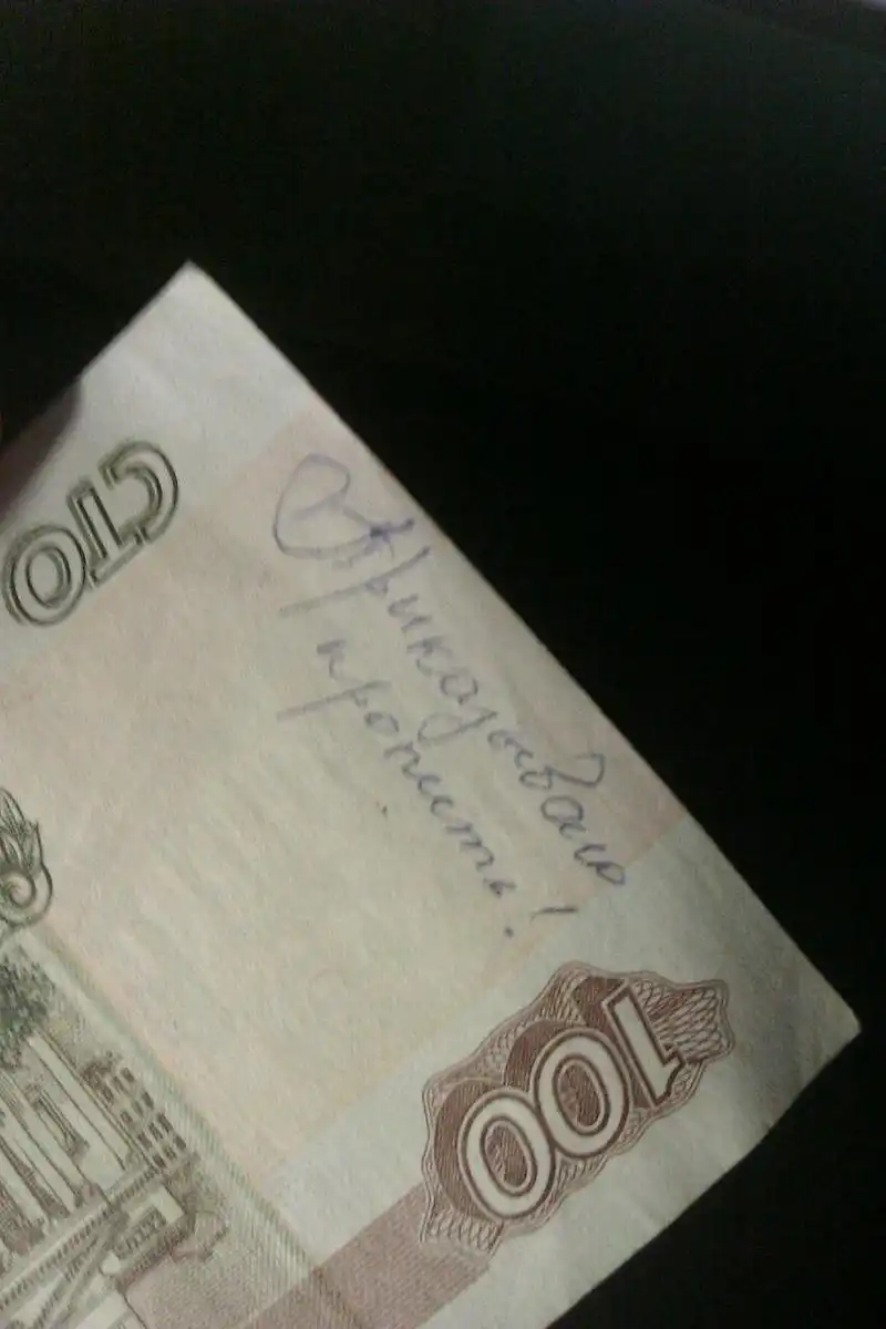 Бедолага, видимо совсем туго, раз уже на купюре пишет...