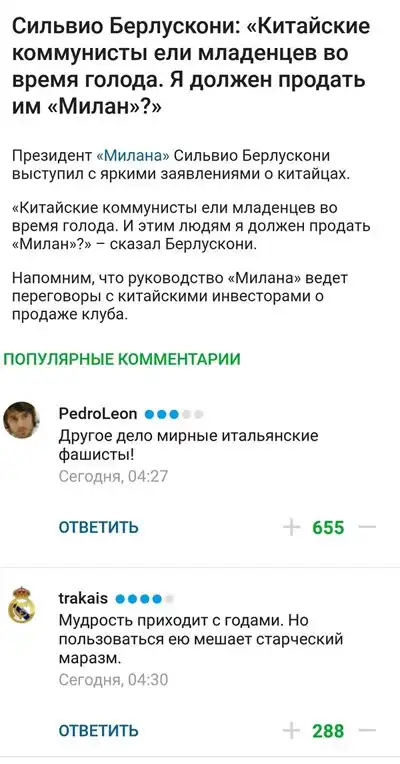 комментарии из социальных сетей.