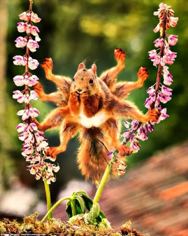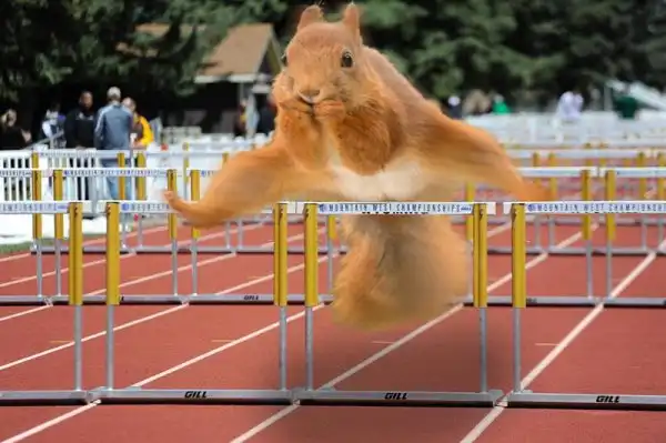 Вновь удачные (или неудачные) кадры становятся поводом для юмора и знания фотошопа. На этот раз героиней битвы стала белка, которая села на шпагат (ну практически).
