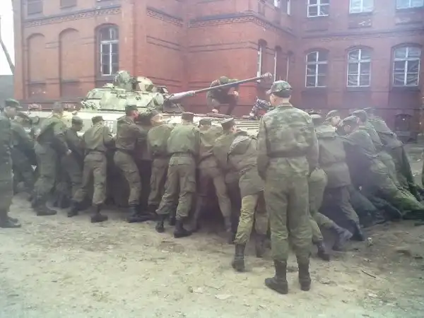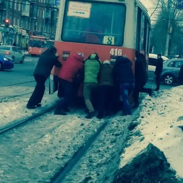 Вообще, с транспортов в России беда. Он тут работает исключительно с толкача. Это касается не только машин. Неулыбчивые русские толкают и маршрутки…