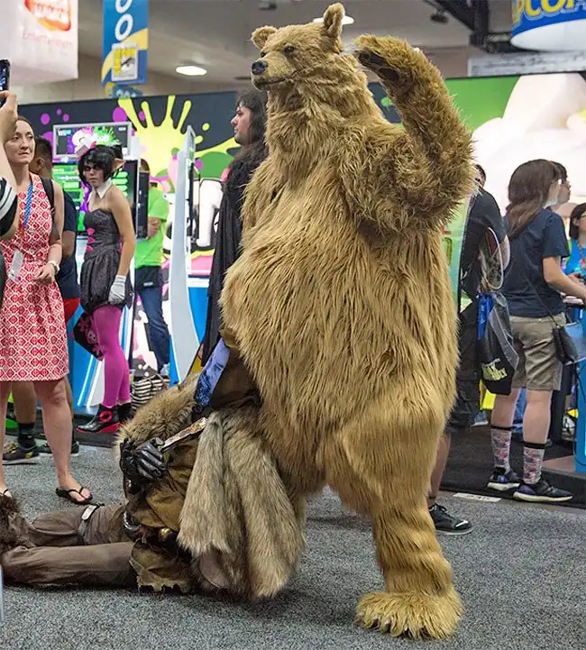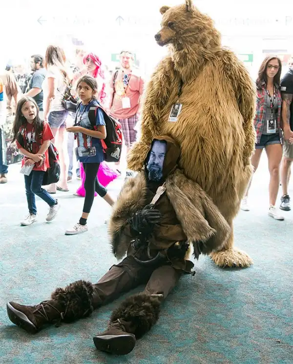 Адам создал гениально-смешной костюм медведя, благодаря которому привлек всеобщее внимание публики крупного мероприятия фанатов поп-культуры на международном фестивале «Comic-Con 2016» в Сан-Диего. Что же такого примечательного было в его костюме, и причем тут «Выживший»? Просто его костюм включал в себя манекен, изображающий труп Леонардо Ди Каприо.