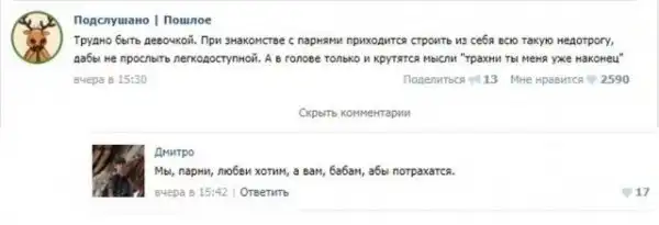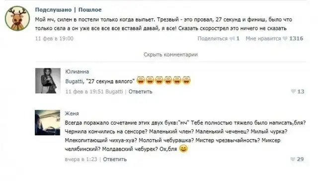 Пошлые посты из соцсетей с забавными комментариями к ним