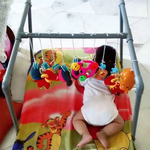 Еще можно сверху подобие клетки соорудить и все, ребенок на игровой зоне