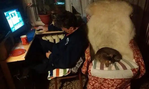 Кот выгнал из-за компа. Пес занял кровать. Чет я уже не уверен, что я хозяин в доме...