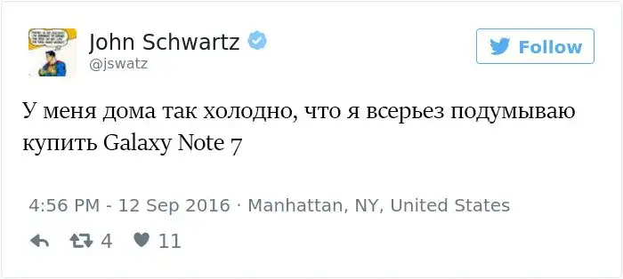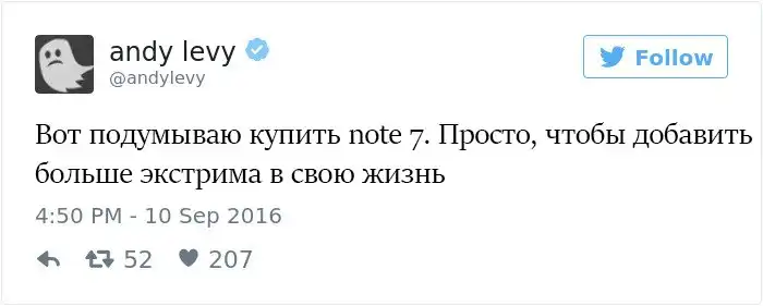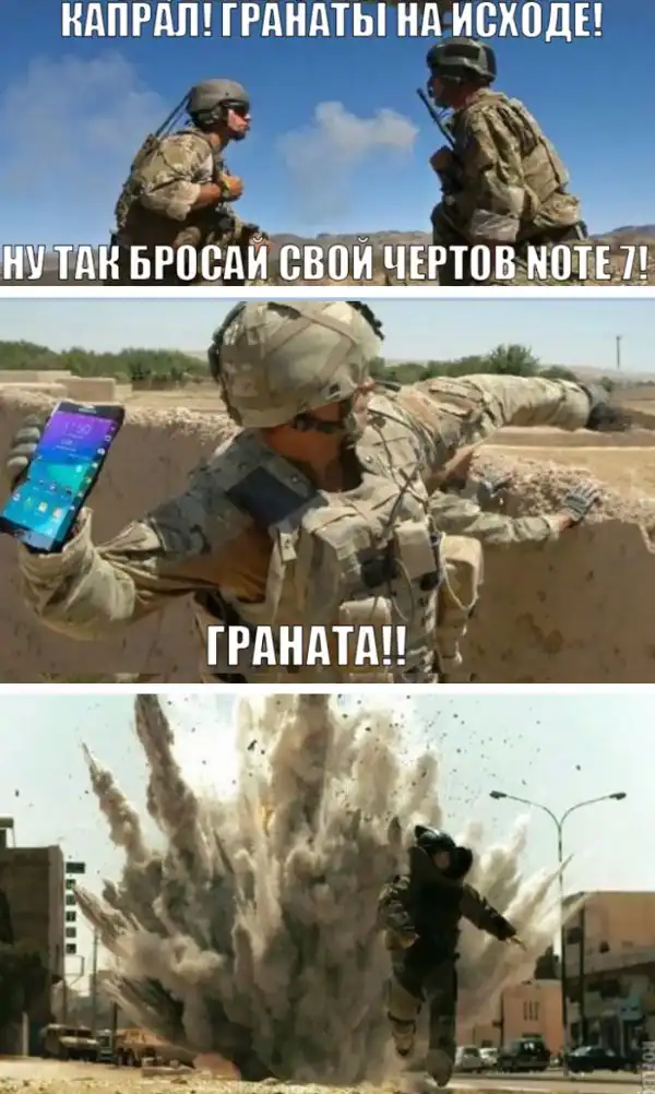 Вчера стало известно, что корейская компания Samsung прекращает сборку и продажу своих смартфонов Galaxy Note 7, а также просит владельцев всех уже использующихся экземпляров выключить их устройства и больше не включать. Взрывающиеся смартфоны — не очень весёлый повод сам по себе. Но пользователям интернета ведь этого не объяснишь. Именно поэтому мы сегодня имеет такое количество шуток и забавных картинок на эту тему. По традиции собрали для вас всё самое лучшее.