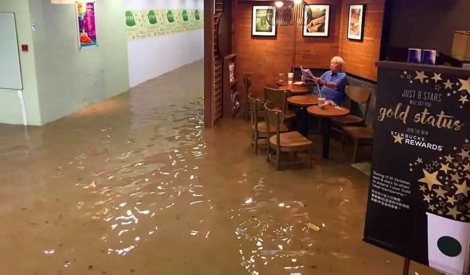 Позже к мужчине присоединился парень в наушниках, которому тоже было плевать на наводнение