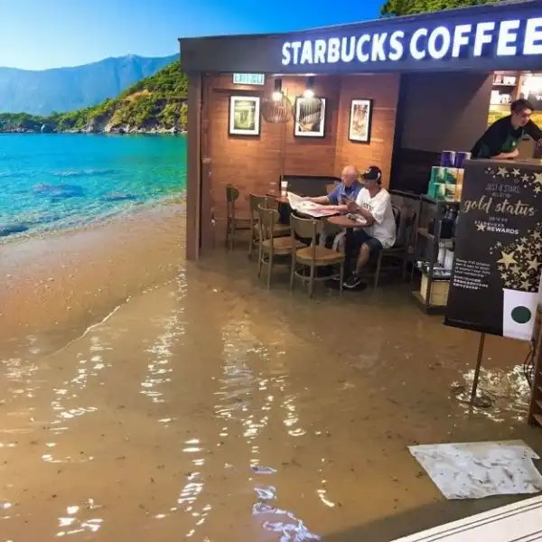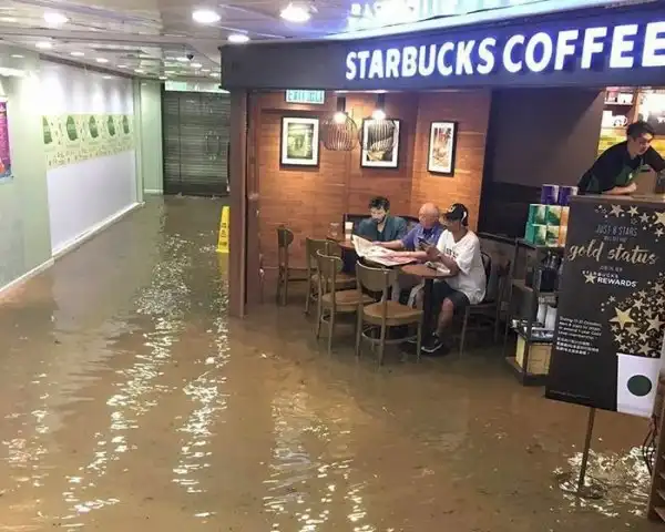 Обратите внимание на работников Starbucks, которые терпеливо ждут, когда их клиент наконец допьет свой кофе и покинет торговый центр также как и все остальные.