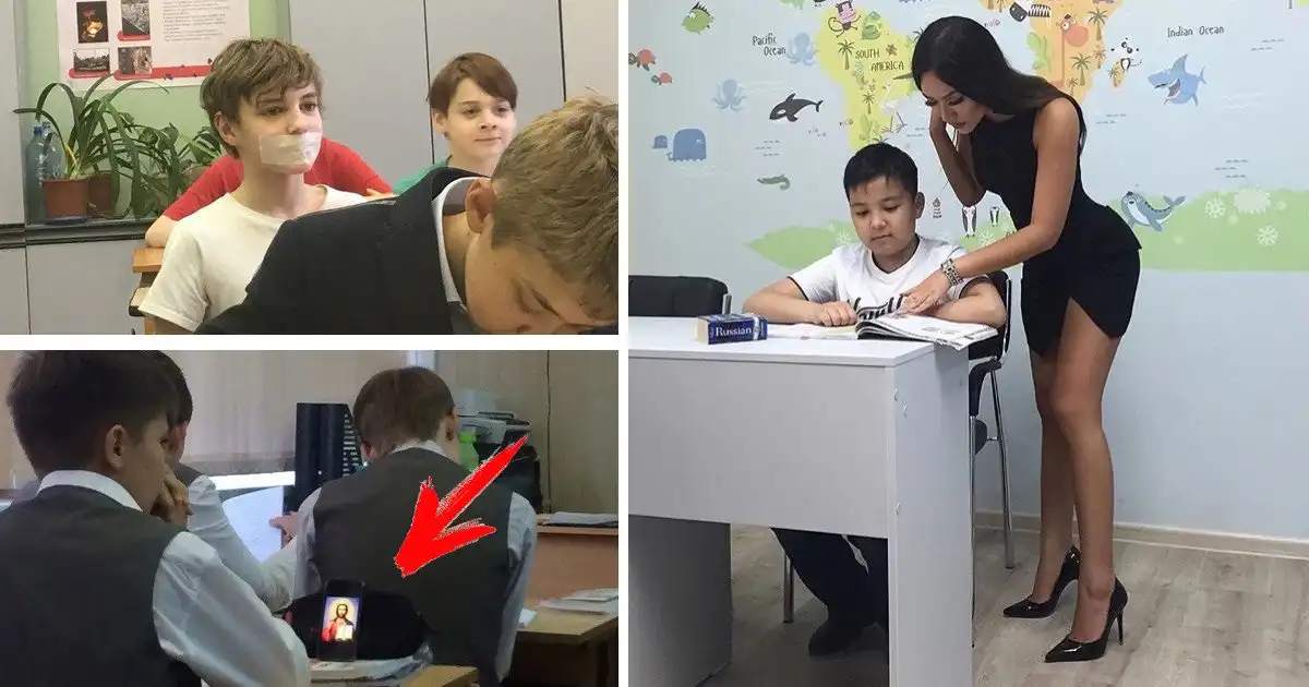 Ничего необычного, просто первоклассники фотографируют домашнее задание