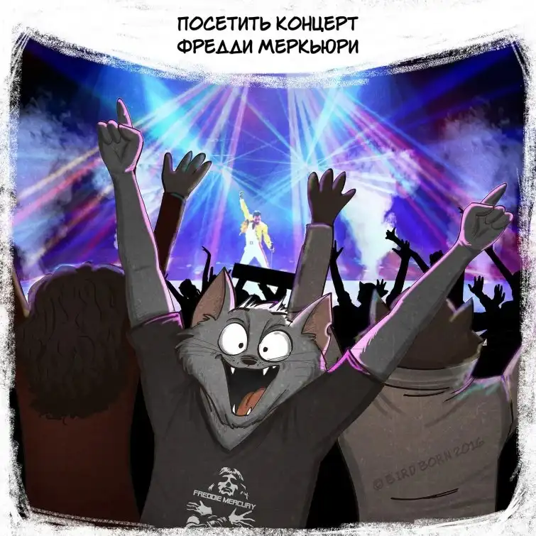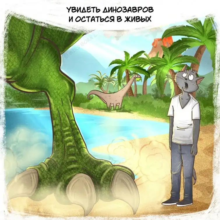 Человек не может жить без мечты, которая как путеводная звезда указывает дорогу и не даёт опустить руки. Однако не всем мечтам суждено сбыться, как это не печально. Ещё в детстве многие из нас грезили, что полетят в космос, когда вырастут или же мечтали попасть в прошлое и узнать, как жили древние люди. А кто из нас не хотел собственными глазами увидеть динозавров или попасть на концерт великой группы или исполнителя, которого уже нет в живых? Иллюстратор Bird Born решил изобразить все эти нереальные желания в своих рисунках.
