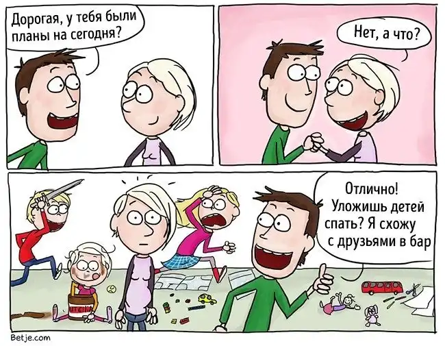 Голландская художница, графический дизайнер, иллюстратор, и мать троих детей Элизабет Тон (Liesbeth Ton) решила отметить 10-летие своего материнства серией картинок о родительских буднях.