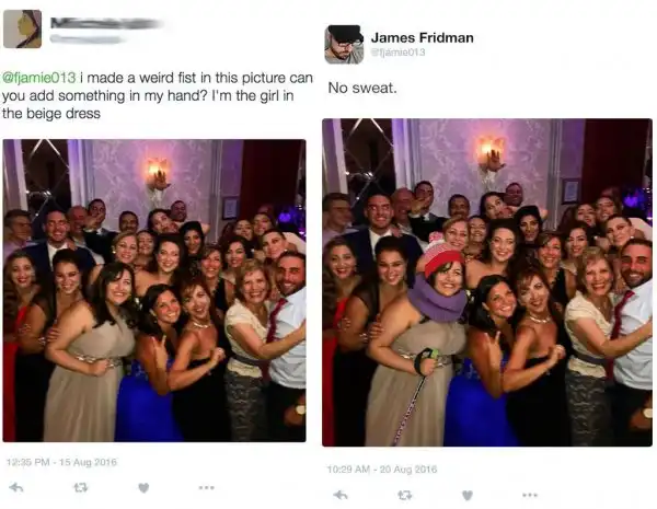4. Пожалуйста, не мог бы ты сделать что-то с дамой на заднем плане? - Без проблем