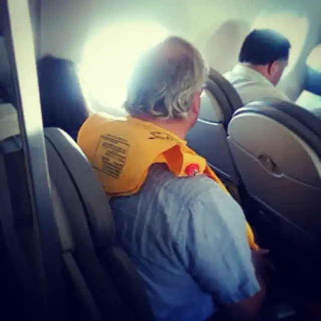 Удобно устроился... у аварийного выхода