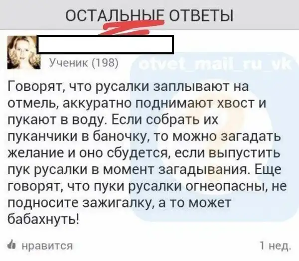 Русалочка офигела, когда спросила за что ее так любят