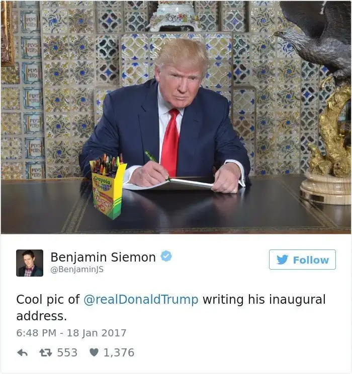 "Вот что написано в инаугурационной речи Трампа!" - предполагает пользователь. Ну, что ж, зато каллиграфия неплоха!