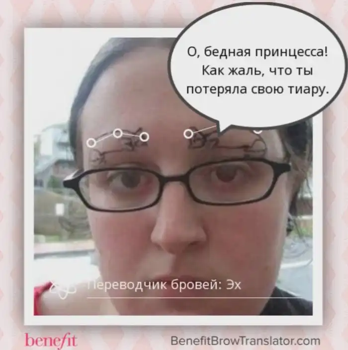 Benefit Cosmetics - качественная декоративная косметика, выпускающая продукцию в нестандартной упаковке с 1976 года. Недавно марка запустила приложение под названием "benefit brow translator"(переводчик бровей бенефит), чтобы понять, как брови влияют на образ в целом.