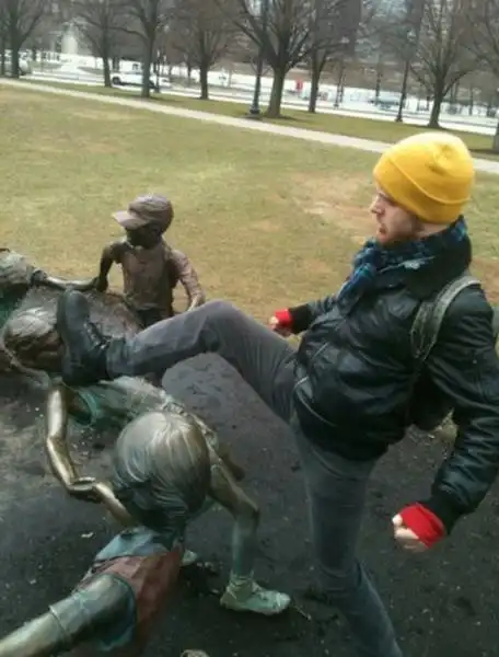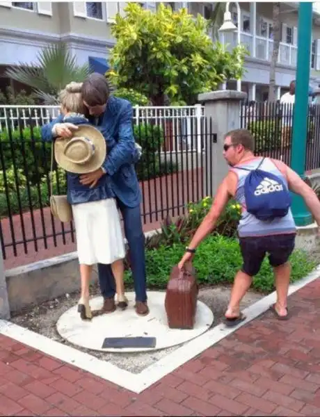 Туристы и местные жители делают забавные фото со статуями и памятниками в разных городах мира. Согласитесь, получается довольно весело и креативно.