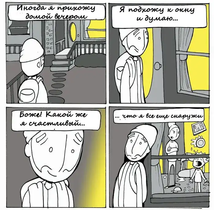 Весна уже в воздухе, и всем хочется немножечко больше счастья. Для кого-то оно в заключается в хорошей погоде и возможности отдохнуть от офисной жизни, для кого-то – вырваться в большой город и провести весь день в шумной толпе. Кому-то хочется наконец-то повернуть свою жизнь и всё изменить, а кто-то счастлив уже от того, что просто купил мороженое. Для каждого счастье выглядит по-разному, и именно об этом наша сегодняшняя подборка комиксов.