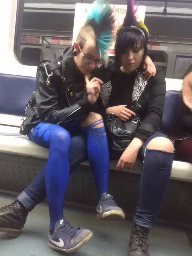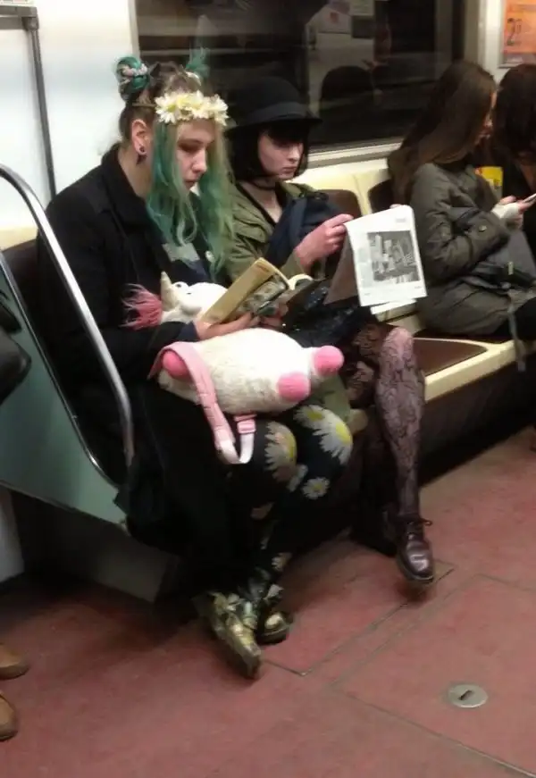 Очередная подборка фотографий странных и модных персонажей, которых можно встретить в российском метро.