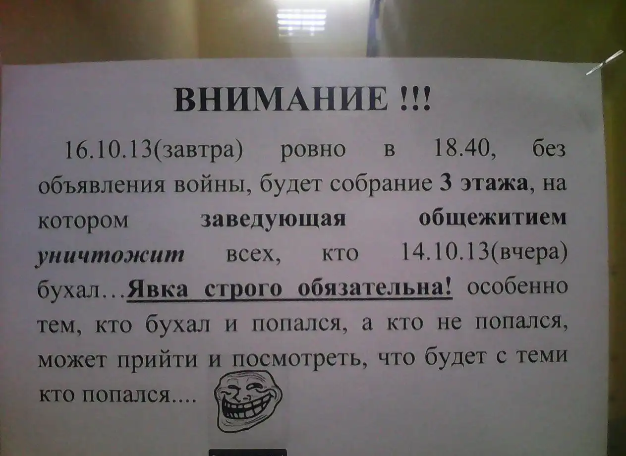 Объявления из студенческих общежитий, которые заставят вас улыбнуться