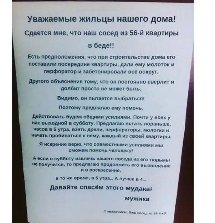 Это случалось с каждым, кому довелось пожить в многоквартирном доме. Когда соседи решают благоустроить своё жилище, остальные обитатели дома испытывают недовольство и дискомфорт. Некоторые соседи очень добрые, а вот некоторым просто не повезло...