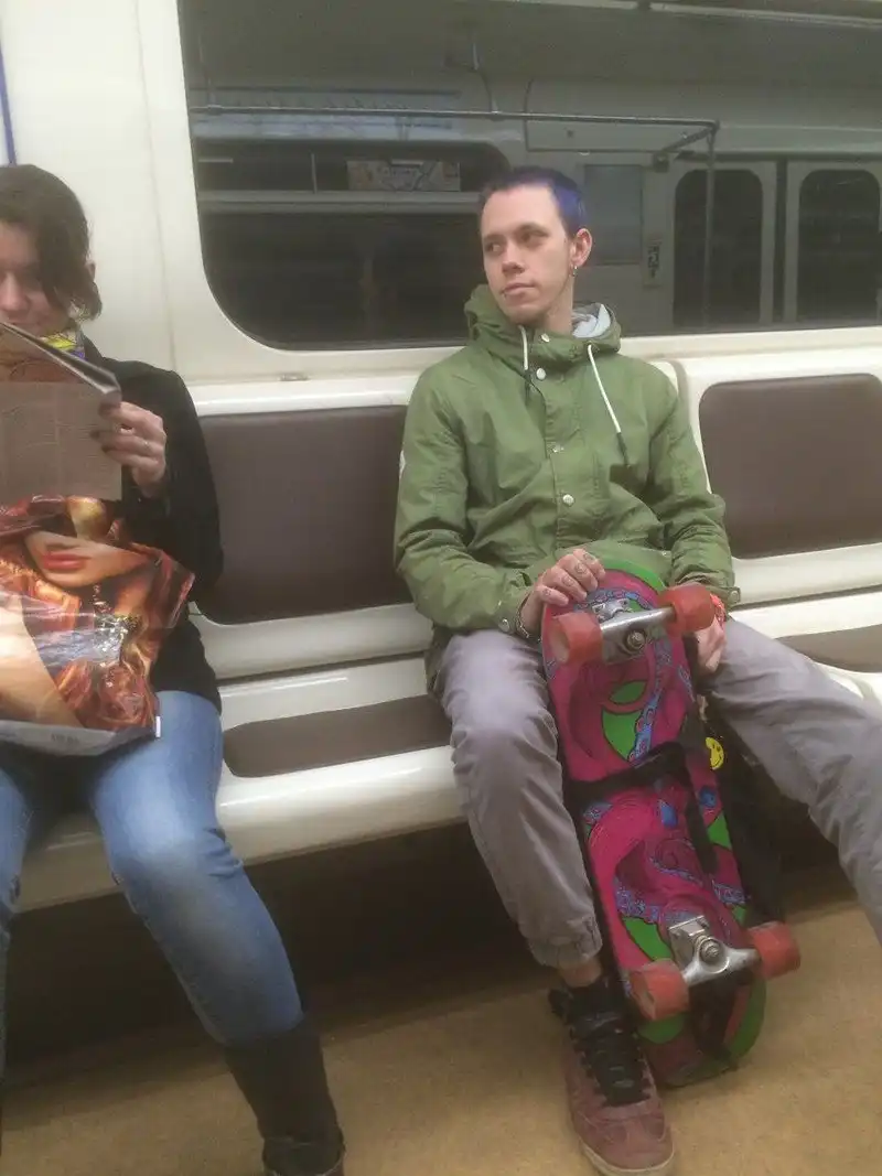 Очередная подборка фотографий странных и модных персонажей, которых можно встретить в российском метро.