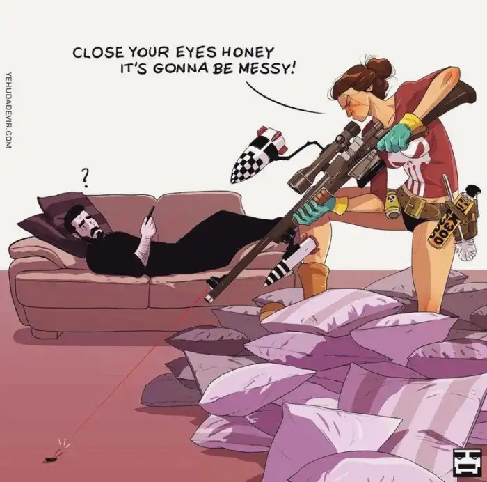 Избавляет она дом от тараканов, использует ли его в качестве своего личного радиатора (или подушки), мотивирует его работать, или, уничтожив кухню во время приготовления сложных блюд (например, каши), жена Иегуды обеспечивает ему вдохновение для создания милых и немного гротескных комиксов.