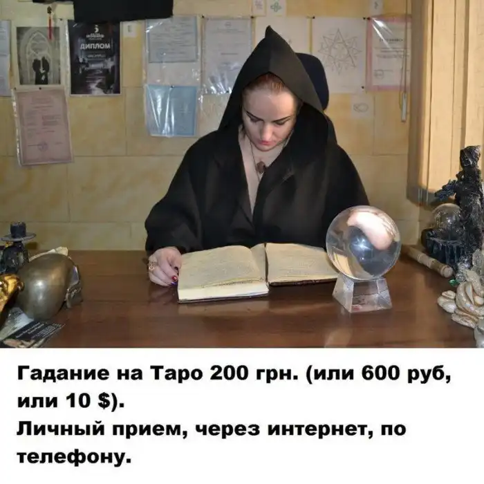 11. У гадалок свои проблемы, нам не понять. Как бы содрать побольше денег, например, посмотреть на человека, в чем одет...