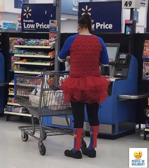 Огромная американская розничная сеть супермаркетов Walmart славится по всему миру не столько обилием товаров, сколько своими неповторимыми покупателями. Только здесь можно увидеть просто чудеса экстравагантного стиля.