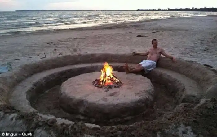 Парень соорудил зону отдыха на пляже и отлично проводит время