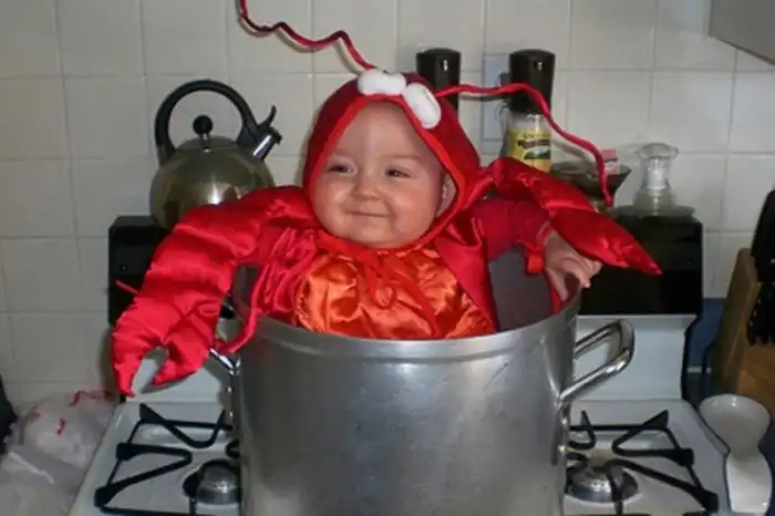 Лобстер считается деликатесом. Однако прежде чем съесть, его нужно отварить. Родители этого карапуза поместили в кастрюлю своего маленького лобстера, который похоже наслаждается процессом.
