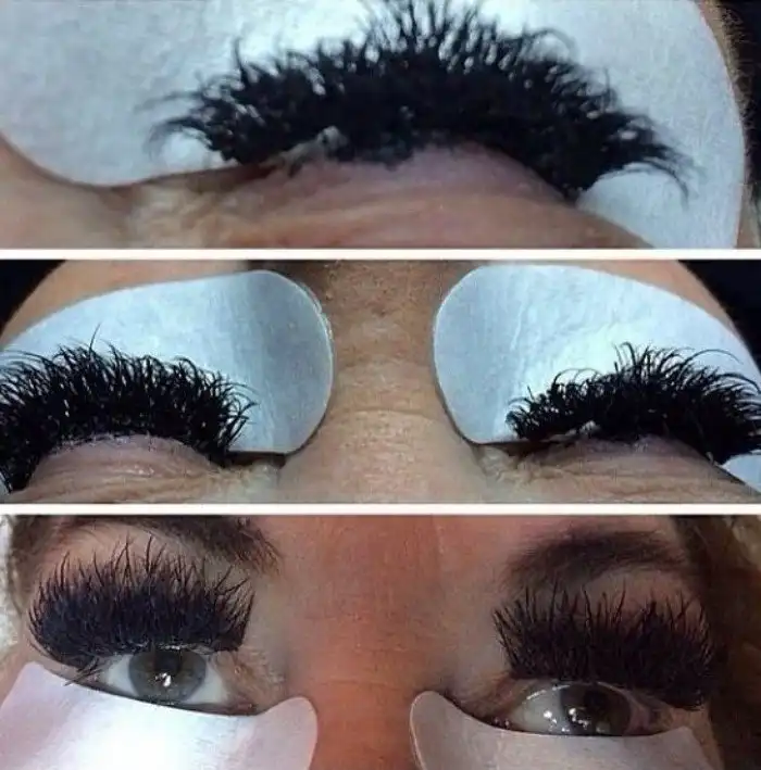 Комментарий мастера, который переделывал работу: на фото объем 3д, ресницы одной длины нарастили, а потом во внутреннем углу подстригали ножницами.