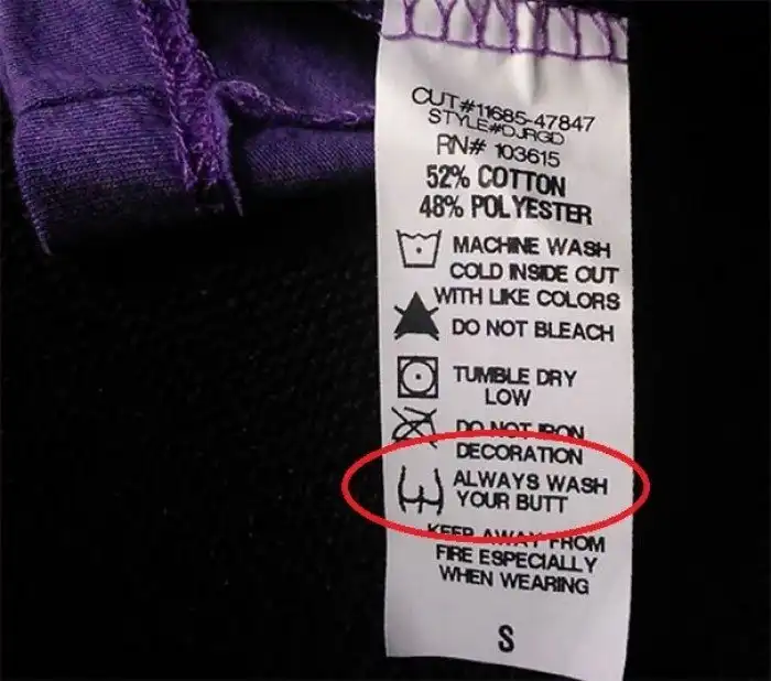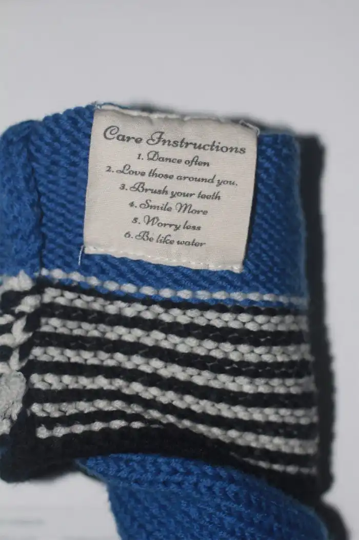 Помимо рекомендаций по стирке прилагаются жизненные советы: "наймите адвоката, удалитесь из Фейсбука, идите в тренажерку". Кроме того, "Изготовлено из 100% пуха единорога"