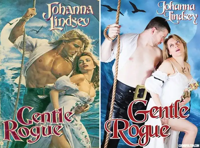 Эти шуточные снимки были созданы по мотивам обложек популярных любовных романов, от которых без ума миллионы женщин во всем мире. Конечно, добиться 100-процентного сходства не получилось, но это даже к лучшему, ведь именно благодаря этому снимки получились более забавными, а потому и мы решили показать их вам. Не стоит быть слишком строгими, просто смотрим на оригинал и полученные фото и улыбаемся.