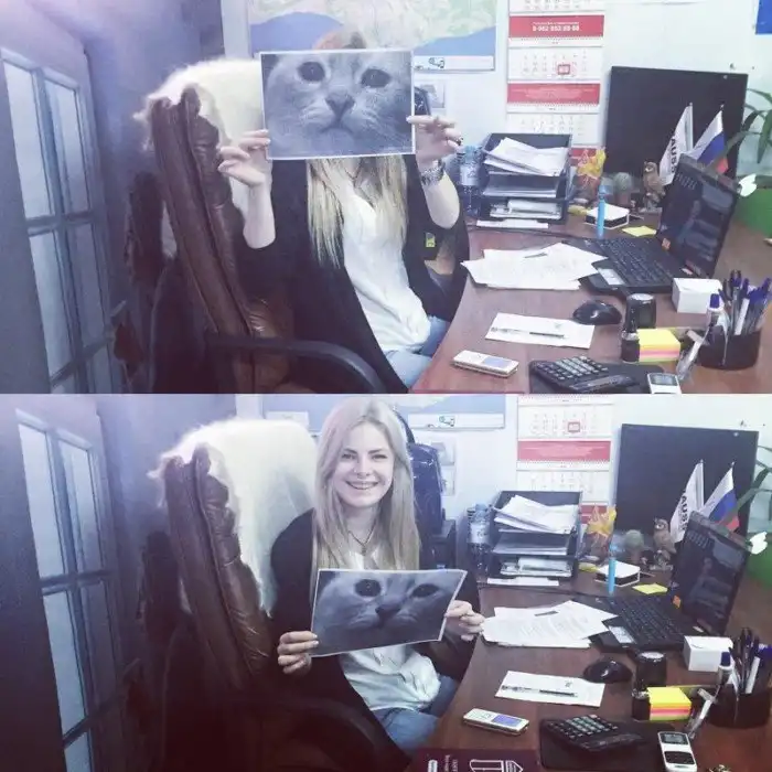 Когда голод берет свое, и ты мило подворовываешь конфеты у сотрудницы