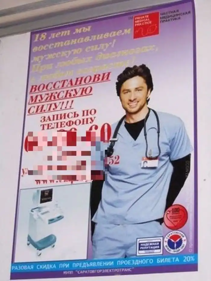 А главный герой сериала "Клиника" Зак Брафф судя по рекламе в трамваях, работает на «Частную медицинскую практику».