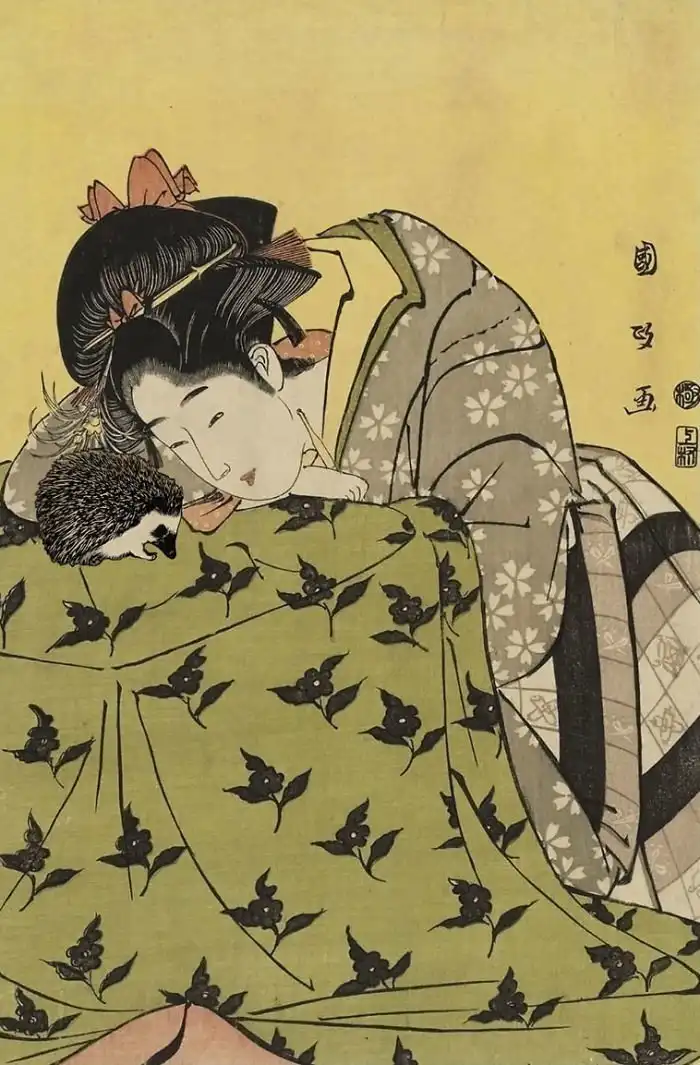 Утагава Кунимаса, "Женщина с ежом"