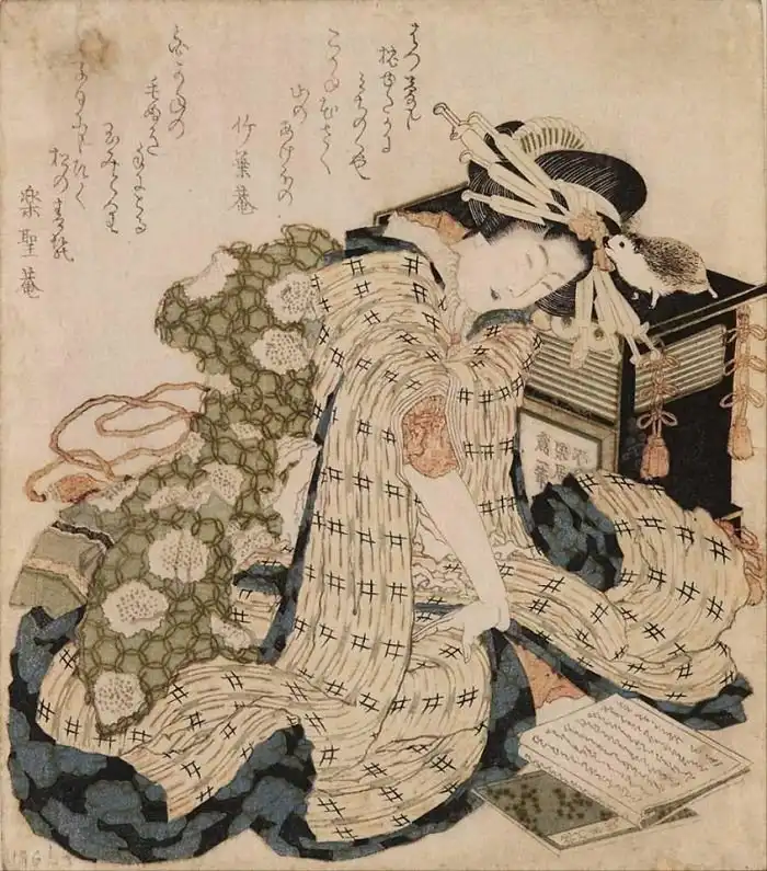 Кацусика Хокусаи, "Спящая красавица с ежом"