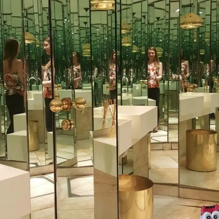 Зеркало с эффектом бесконечности в толчекане позволяет отстраниться от мирских сует