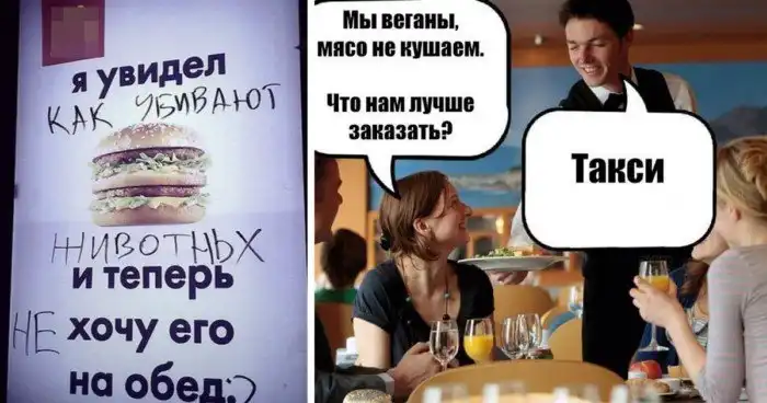 Все противостояние мясоедов и веганов на одном фото
