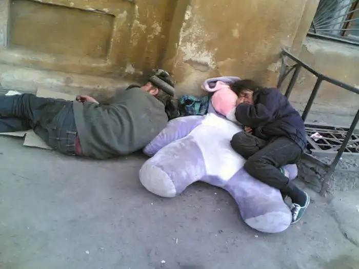 Бездомные люди тоже умеют смеяться над собой! Не важно почему они стали бездомными, важно что они отнеслись ко всем тяготам жизни с юмором, и добротой, и не потеряли человечность!