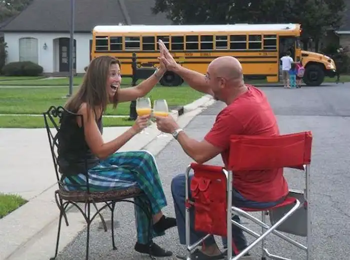 Волна фотографий прокатилась по зарубежному Интернету. Родители стали публиковать снимки, на которых их грустные дети идут в школу, а они наоборот радостно провожают их туда. Получилась очень забавная серия снимков, которую поймут все у кого дети идут на учебу.
