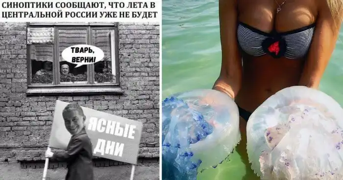 А вот и редкие кадры российского теплого лета. Люди старались брать от этих деньков по-максимуму