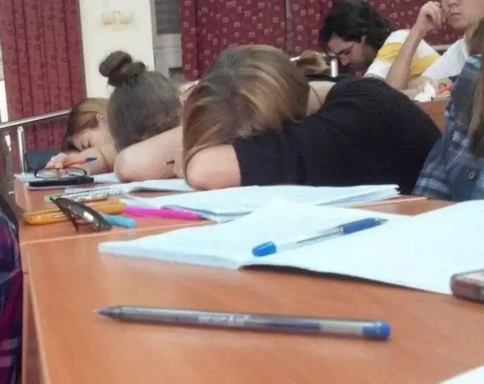 У некоторых первокурсников осталась привычка со школы - стулья на парту
