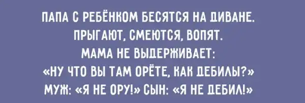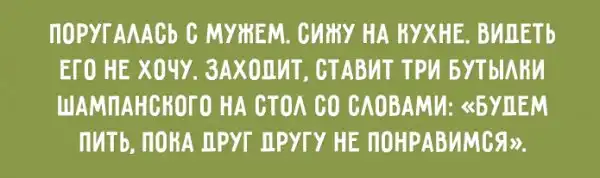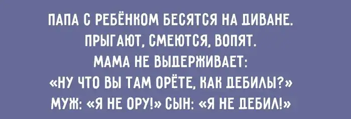 Маленькими семейными радостями и трудностями наполнен каждый наш день. И только от нас зависит, как к ним относиться. Но не забывайте: уделяйте больше внимания радостям – и они увеличатся многократно, решайте трудности сразу или, если это невозможно, забывайте о них – и их будет становиться всё меньше и меньше. И ничто так не помогает придерживаться этих советов, как чувство юмора:
