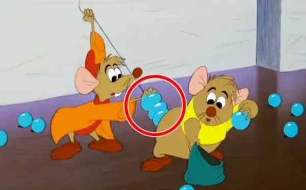 В мультфильме про Золушку двое мышат собирают рассыпавшиеся на полу бусины. Дети радуются изобретательности и находчивости Жака, который использует хвост Гаса как ниточку, нанизывая на него бусинки. Но некоторые родители, наоборот, улавливают в этом жесте совершенно скрытый подтекст.