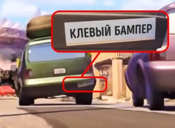 В мультфильме «Тачки» все машинки созданы по подобию людей, с отличительным характером и поведением. Поэтому в некоторых моментах родители очень легко смогли провести аналогию с нашим миром. Так, надпись «Клевый бампер» на задней части автомобиля заставила улыбнуться взрослую часть публики.