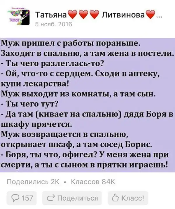 В подборке присутствуют: переписки, сообщения, фотографии, ну и просто анекдоты из ранее упомянутой соц. сети. :haha:
