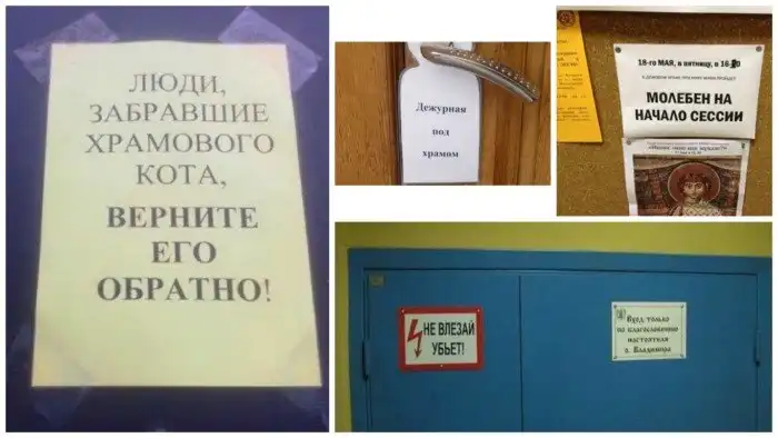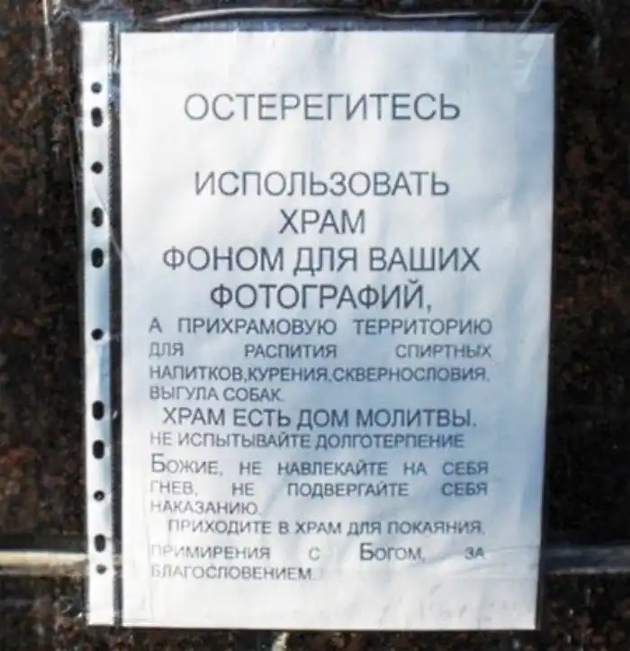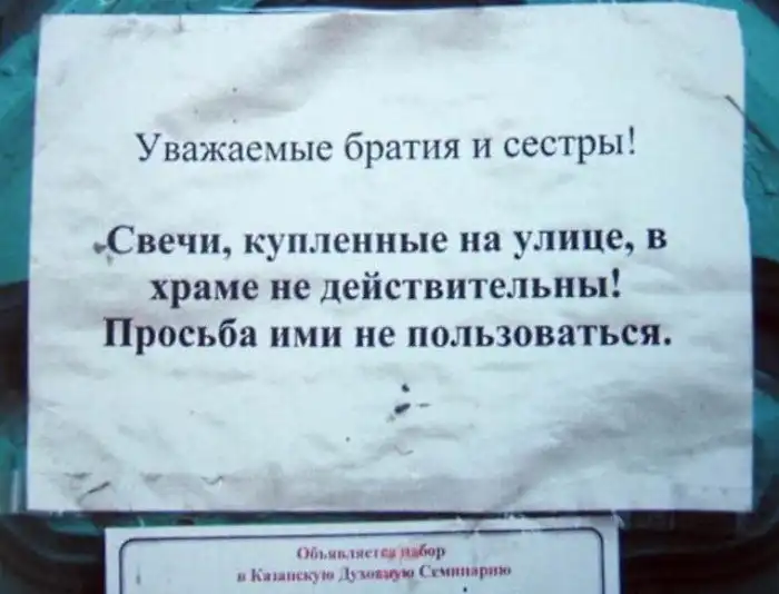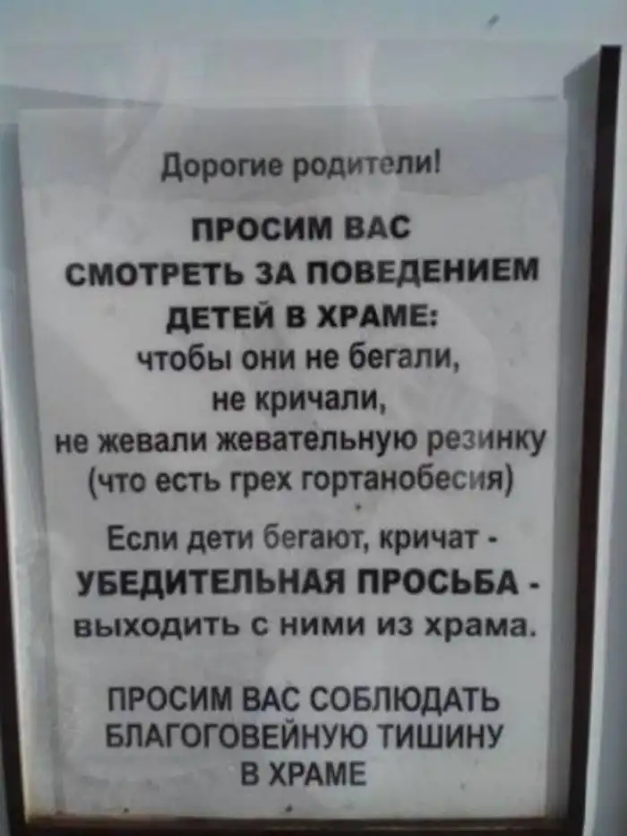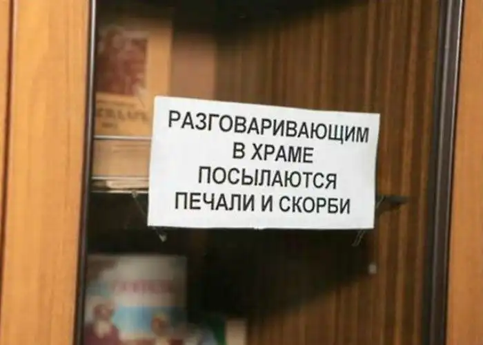 Храмы - совершенно особенная вотчина со своими законами и порядками. Прихожане, конечно, обязаны чтить заведенный там устав, однако, видимо, бывает не лишним напомнить о правилах поведения. И иногда это выглядит очень забавно.